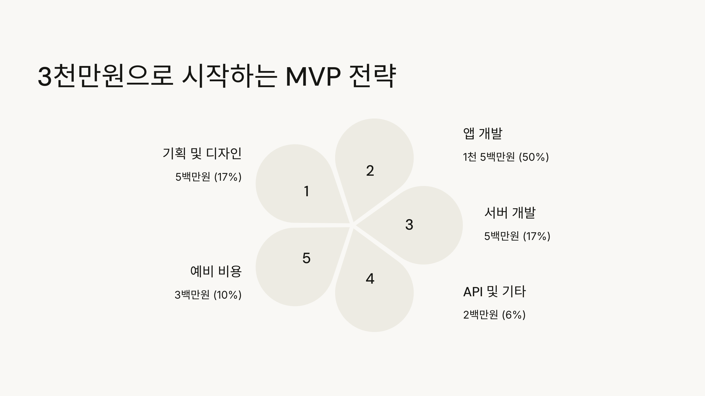 제한된 예산으로 최대 효과를 내기 위해선 MVP(Minimum Viable Product) 전략이 필수입니다. 모든 기능을 한 번에 구현하려 하지 말고, 핵심 가치를 전달할 수 있는 최소한의 기능만 먼저 개발하세요.