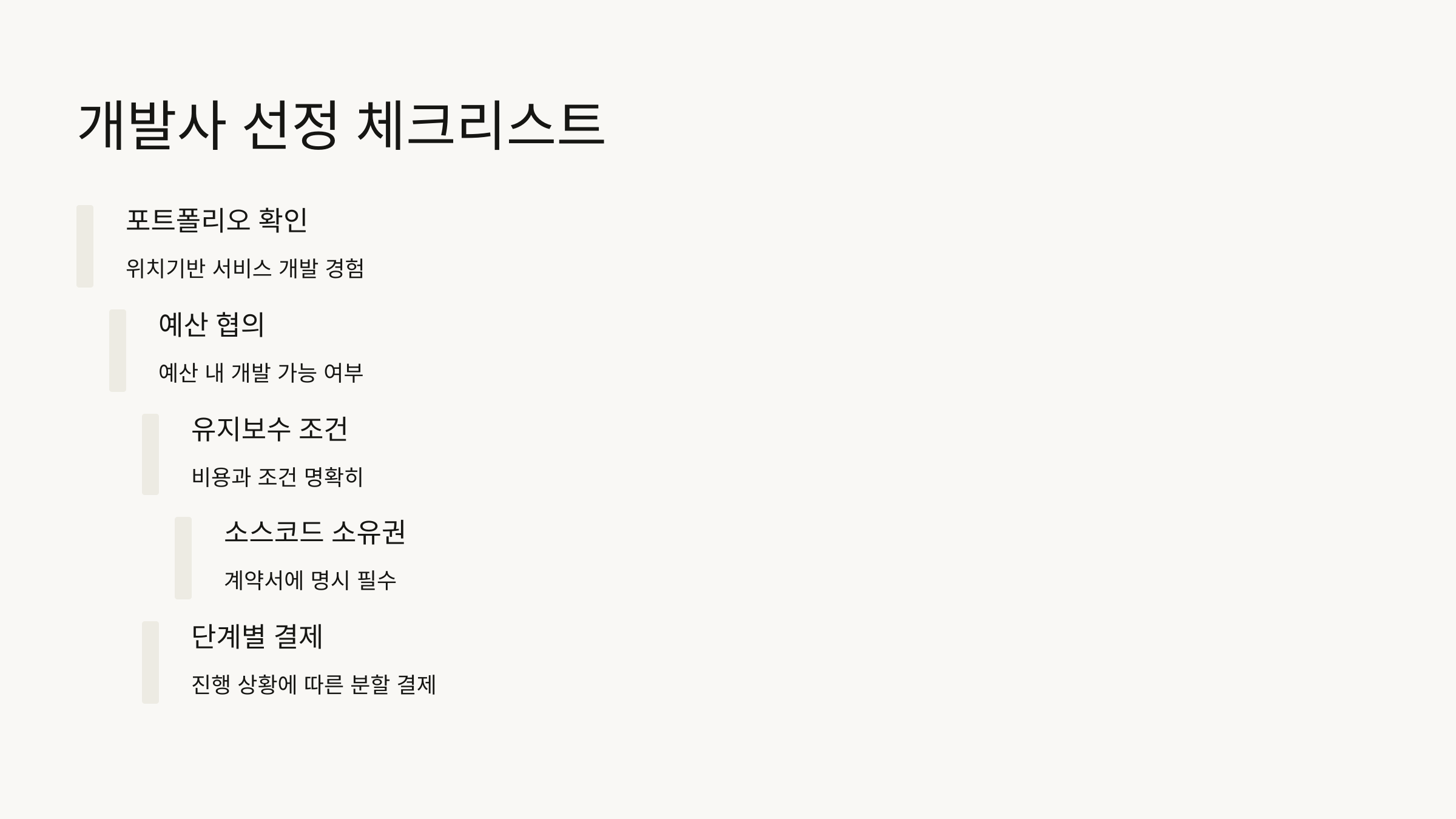 개발사 선정 체크리스트