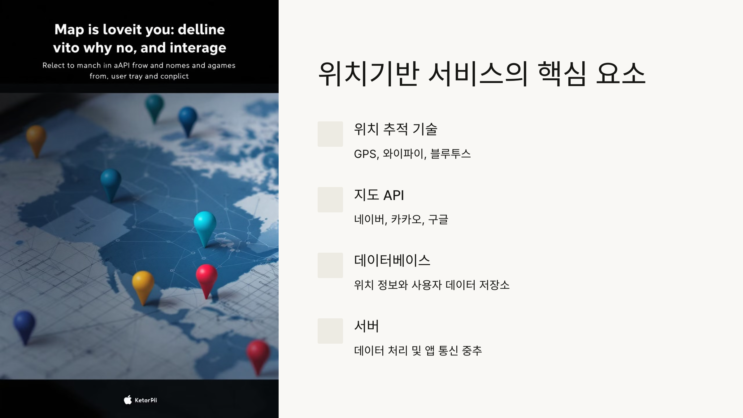 위치기반 서비스는 단순히 지도를 보여주는 것이 아닙니다. 사용자의 현재 위치를 파악하고, 주변 정보를 제공하며, 목적지까지의 경로를 안내하는 복합적인 기능을 포함합니다. 기술적으로 복잡해 보이지만, 개발 시작 전에 알아야 할 기본 요소는 다음과 같습니다: